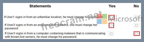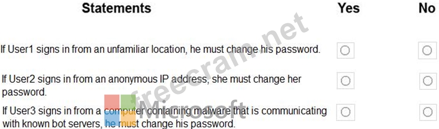 3. If User3 signs in from a computer containing malware that is communicating with known bot servers, he must change his password.