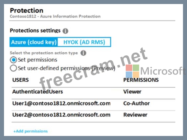 You create an Azure Information Protection label named Label1. The Protection settings for Label1 are configured as shown in the exhibit. (Click the Exhibit tab.)