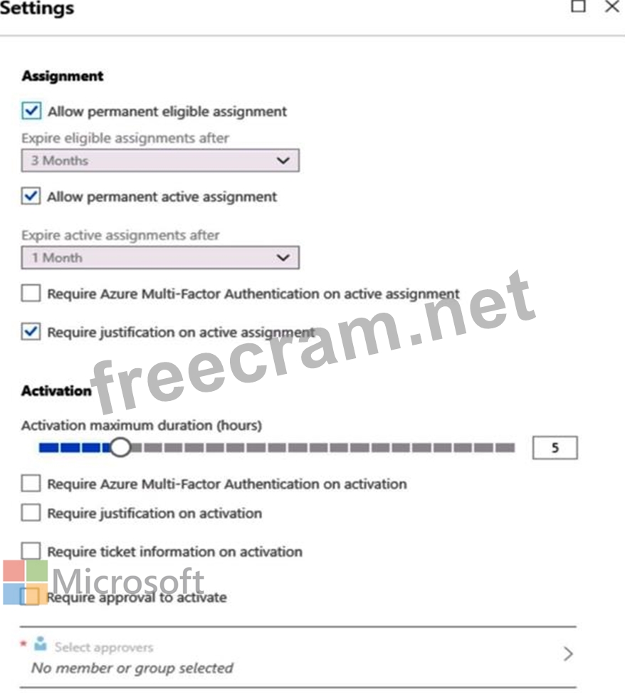 From Azure AD Privileged Identity Management (PIM), you configure the settings for the Security Administrator role as shown in the following exhibit.