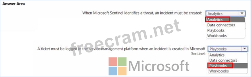 * A ticket must be logged in the service management platform when an incident is created in Microsoft Sentinel.