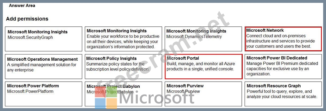 Which two permissions should you add to Role1? To answer, select the appropriate permission in the answer area.