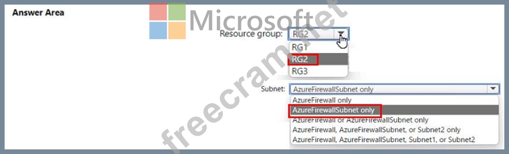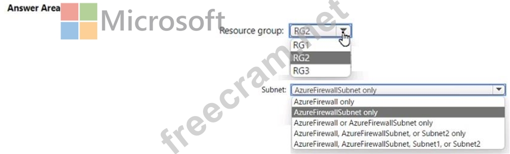 Which resource group and subnet can you use to deploy AzFW1? To answer, select the appropriate options in the answer area.