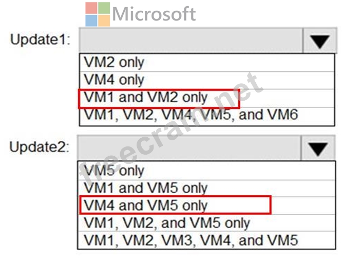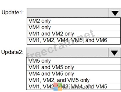 Which additional virtual machines can be updated by using Update1 and Update2? To answer, select the appropriate options in the answer area.