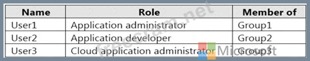 You have an Azure Active Directory (Azure AD) tenant named contoso.com that contains three security groups named Group1, Group2, and Group3 and the users shown in the following table.
