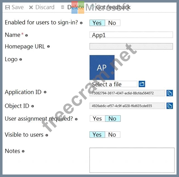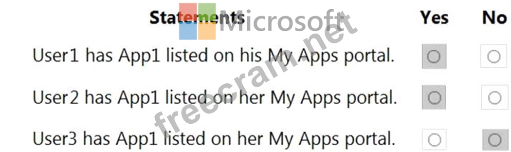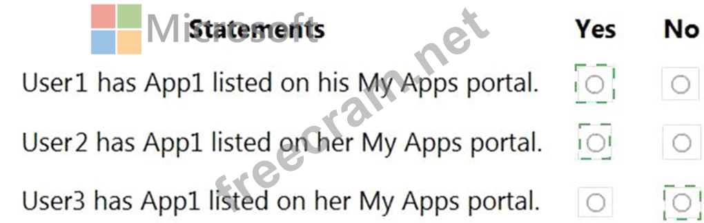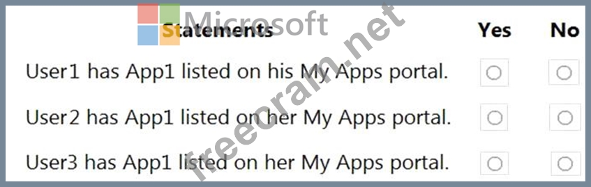 In contoso.com, you register an enterprise application named App1 that has the following settings: