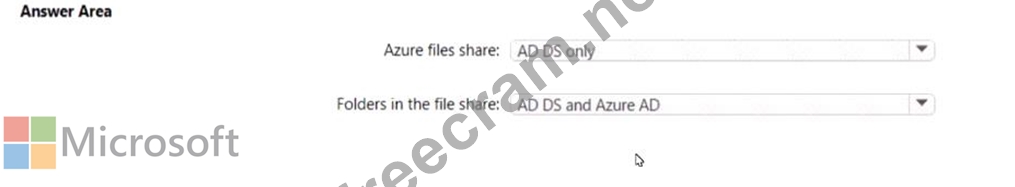Which identity store can you use to assign permissions to the Azure file share and folders within the share? To answer, select the appropriate options in the answer area.