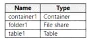You have an Azure subscription that contains a user named User1 and a storage account named storage 1. The storage1 account contains the resources shown in the following table: