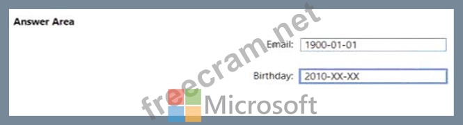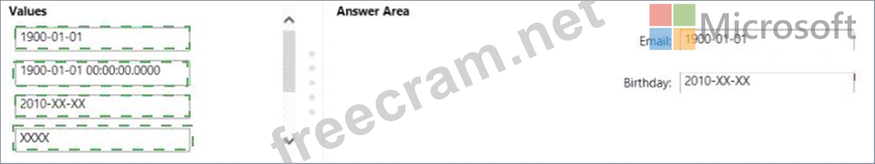 For the Email and Birthday columns, you implement dynamic data masking by using the default masking function.
