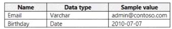 You have an Azure subscription that contains an Azure SQL database named SQLDB1. SQLDB1 contains the columns shown in the following table.