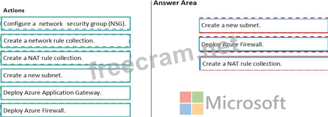 Which three actions should you perform in sequence? To answer, move the appropriate actions from the list of actions to the answer area and arrange then in the correct order.