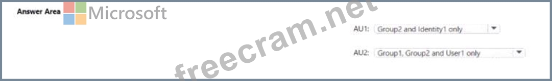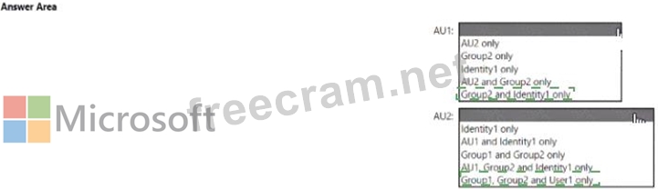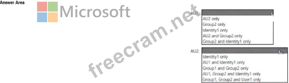 Which resources can be added to AU1 and AU2? To answer, select the appropriate options in the answer area.