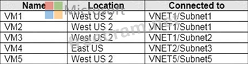 Question 43: You have the Azure virtual machines shown in the following t...