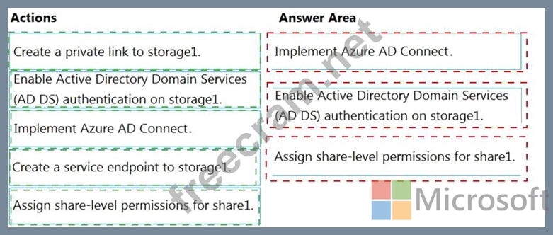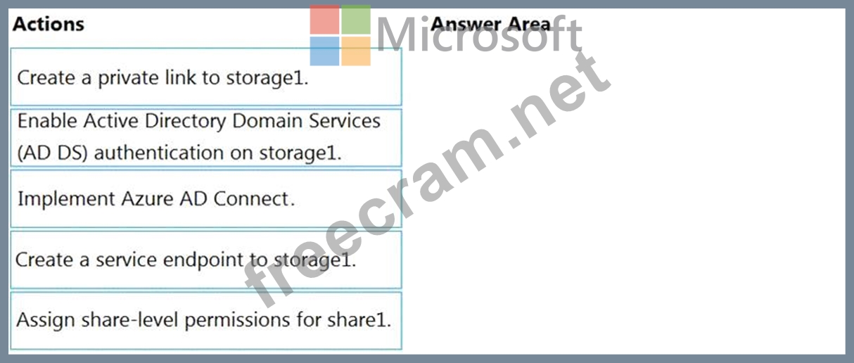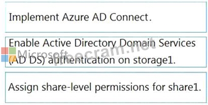 You have an Azure subscription that is linked to an Azure Active Directory (Azure AD) tenant named contoso.com. The tenant contains an Azure Storage account named storage1. Storage1 contains an Azure file share named share1.