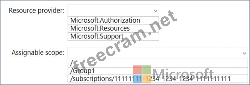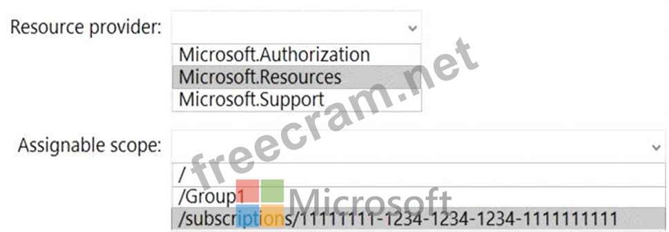 You have a management group named Group1 that contains an Azure subscription named sub1. Sub1 has a subscription ID of 11111111-1234-1234-1234-1111111111.