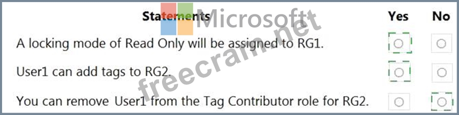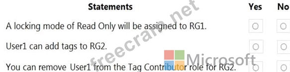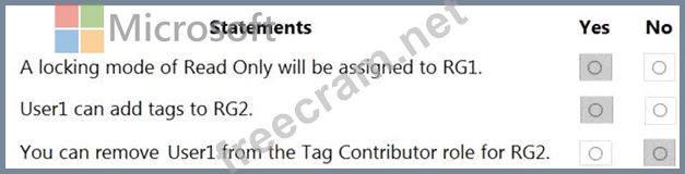 You have an Azure subscription named Subscription1 that contains a resource group named RG1 and a user named User1. User1 is assigned the Owner role for RG1.