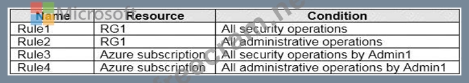 Which rules will trigger an alert as a result of the actions of Admin1? To answer, select the appropriate options in the answer area.