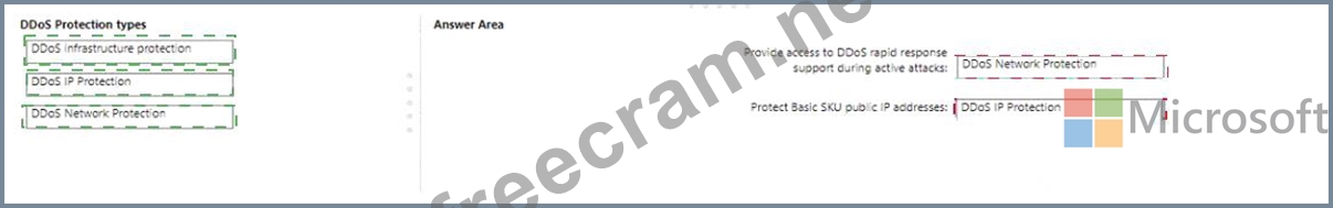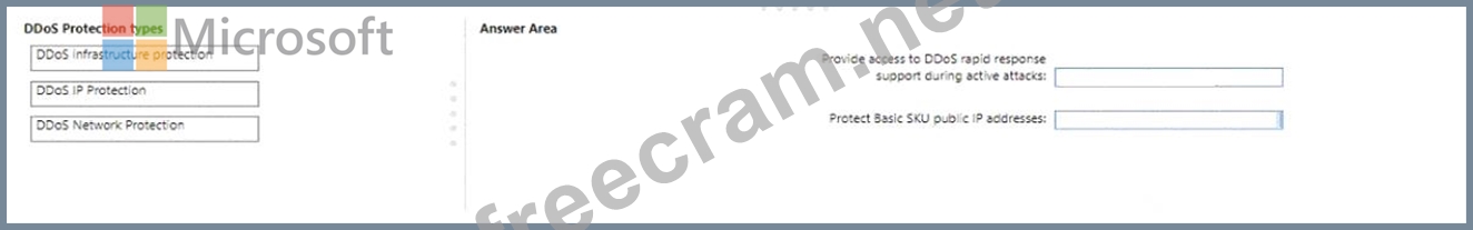 What should you recommend? To answer, drag the appropriate DDoS projection types to the correct requirements. Each DDoS Projection type may be used once, or not at all. You may need to drag the split bar between panes or scroll to view connect.