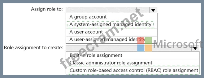 You need to grant Function1 the minimum required privileges to create the storage accounts. The solution must minimize administrative effort.