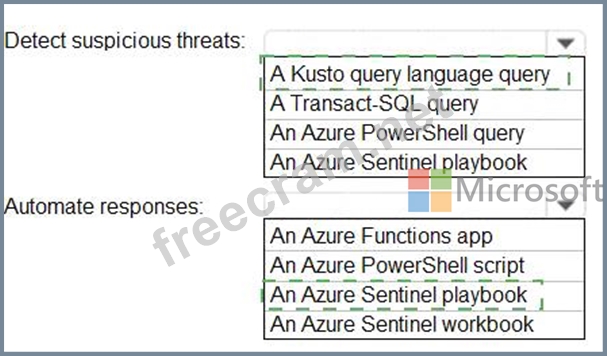 You plan to use Azure Sentinel to create an analytic rule that will detect suspicious threats and automate responses.