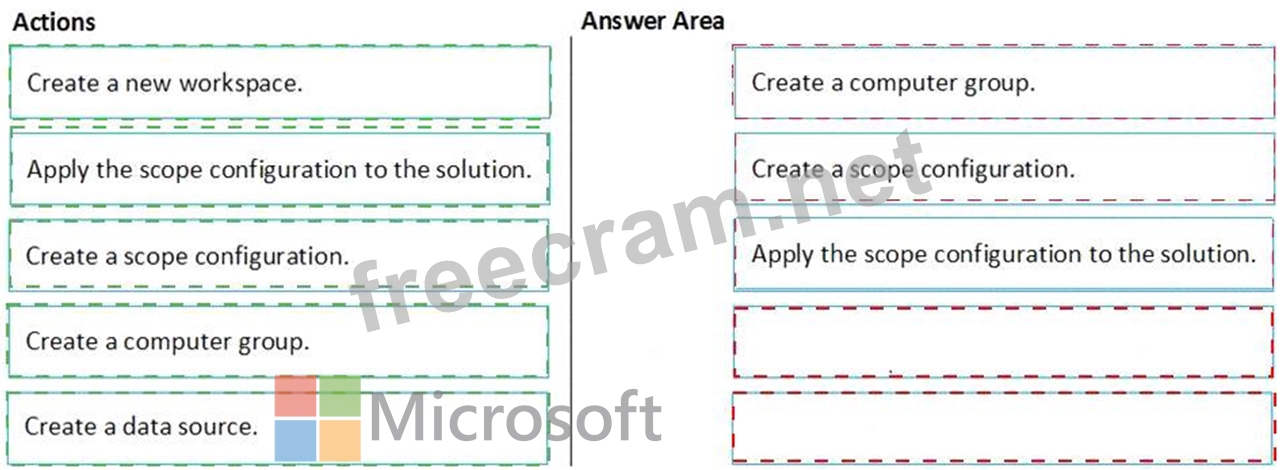 Which three actions should you perform in sequence? To answer, move the appropriate actions from the list of actions to the answer area and arrange them in the correct order.