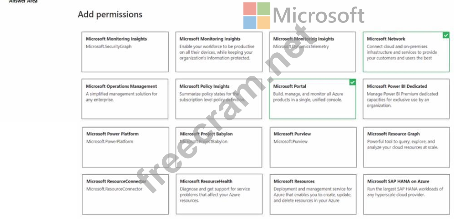 Which two permissions should you add to Role1? To answer, select the appropriate permission in the answer area.