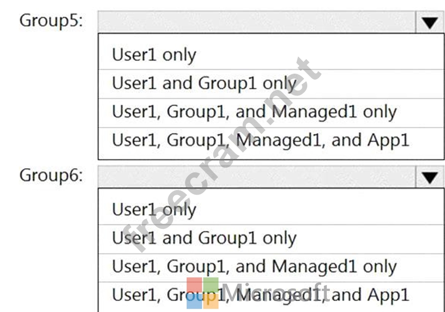 Which resources can you add to Group5 and Group6? To answer, select the appropriate options in the answer area.