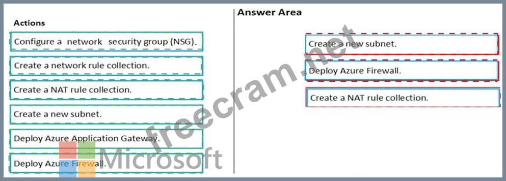 Which three actions should you perform in sequence? To answer, move the appropriate actions from the list of actions to the answer area and arrange then in the correct order.