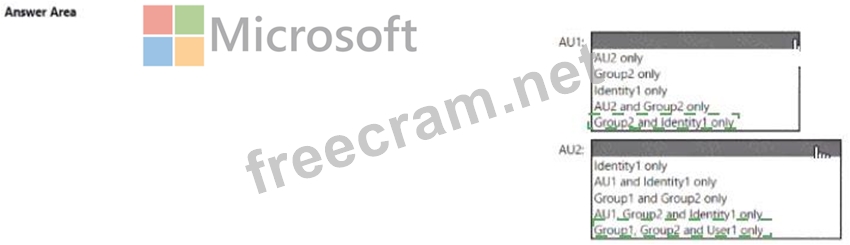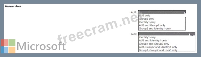 Which resources can be added to AU1 and AU2? To answer, select the appropriate options in the answer area.