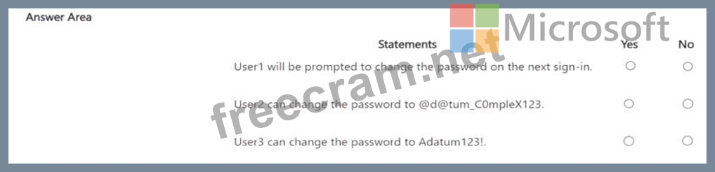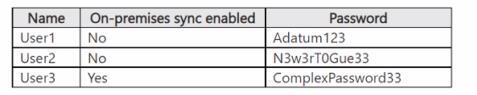 Your network contains an on-premises Active Directory domain named adatum.com that syncs to a Microsoft Entra tenant.