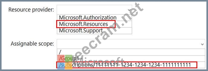 You have a management group named Group1 that contains an Azure subscription named sub1. Sub1 has a subscription ID of 11111111-1234-1234-1234-1111111111.