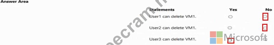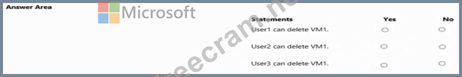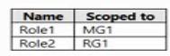 You have a management group named MG1 that contains an Azure subscription and a resource group named RG1. RG1 contains a virtual machine named VM1. You have the custom Azure roles shown in the following table.