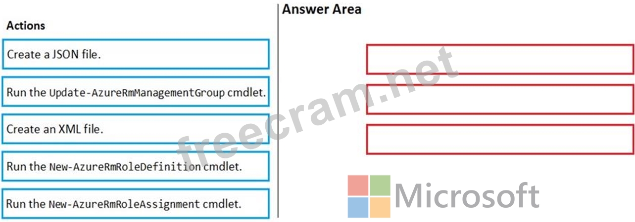 Which three actions should you perform in sequence? To answer, move the appropriate actions from the list of actions to the answer area and arrange them in the correct order.