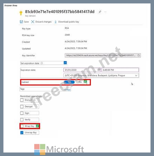 Which two settings should you modify for Key1? To answer, select the appropriate settings in the answer area.