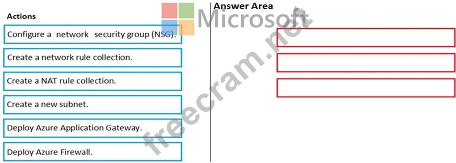 Which three actions should you perform in sequence? To answer, move the appropriate actions from the list of actions to the answer area and arrange then in the correct order.