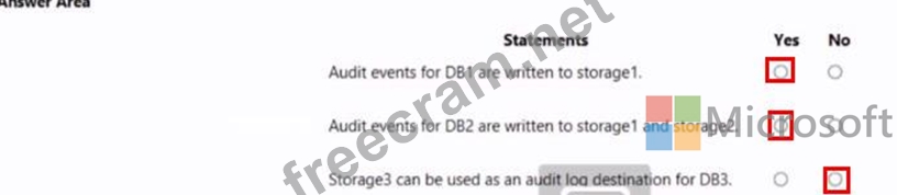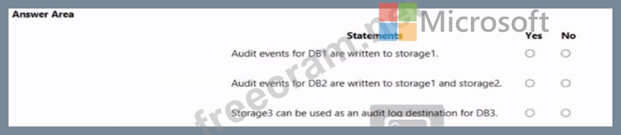 You have an Azure subscription that contains three storage accounts, an Azure SQL managed instance named SQL and three Azure SQL databases. The storage accounts are configured as shown in the following table.