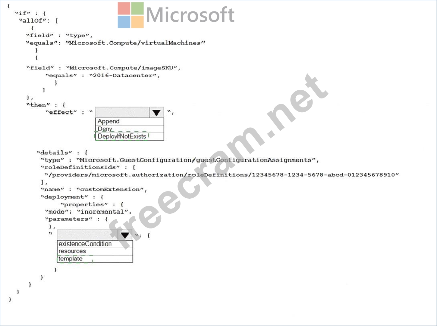 You need to implement a policy to ensure that each virtual machine has a custom antimalware virtual machine extension installed.