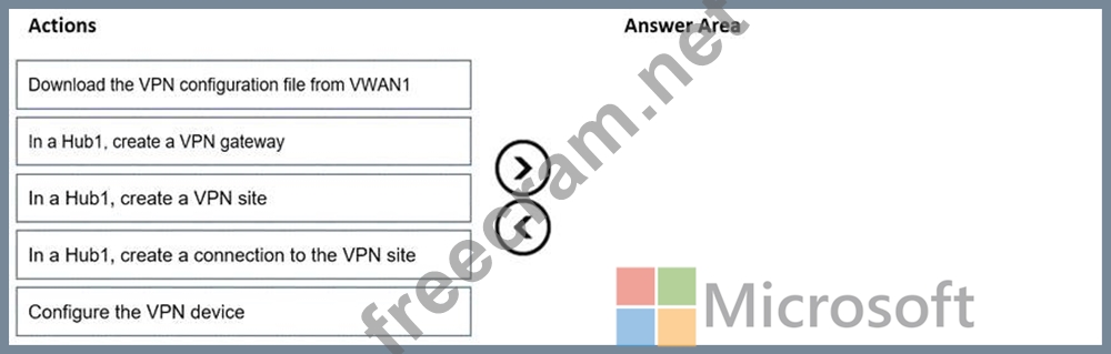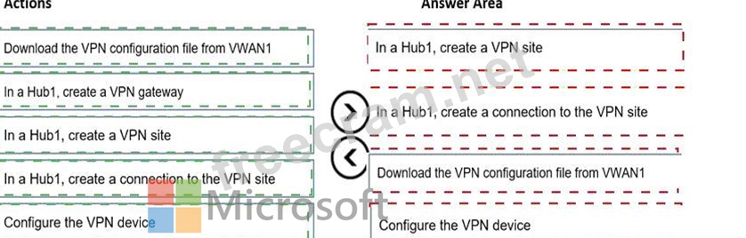 You have an Azure virtual WAN named VWAN1 that has a hub named Hub1. Hub1 connects two of the three on-premises sites by using a Site-to-Site VPN connection.