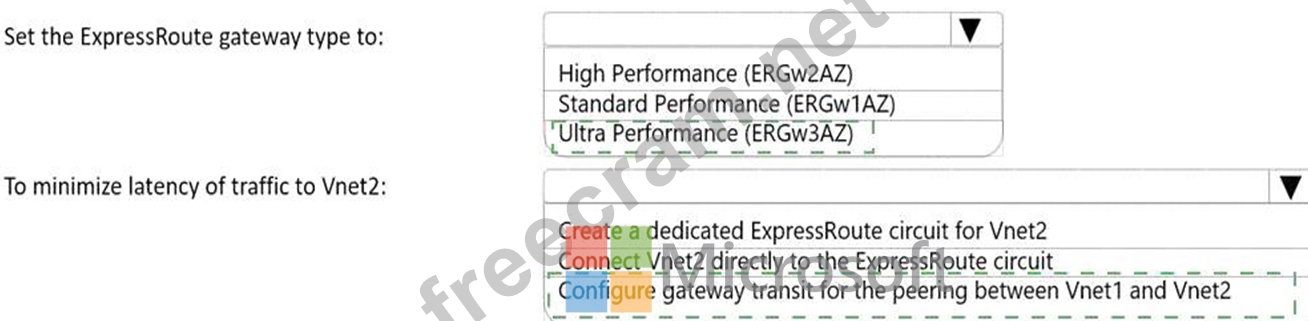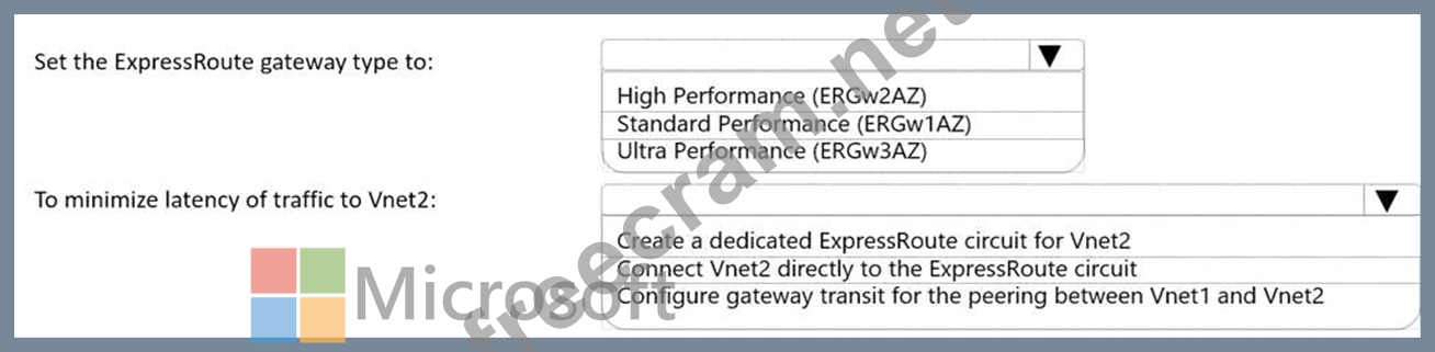 You need to recommend a configuration for the ExpressRoute connection from the Boston datacenter. The solution must meet the hybrid networking requirements and business requirements. What should you recommend? To answer, select the appropriate options in the answer area. NOTE: Each correct selection is worth one point.