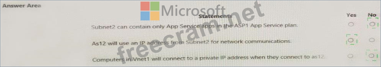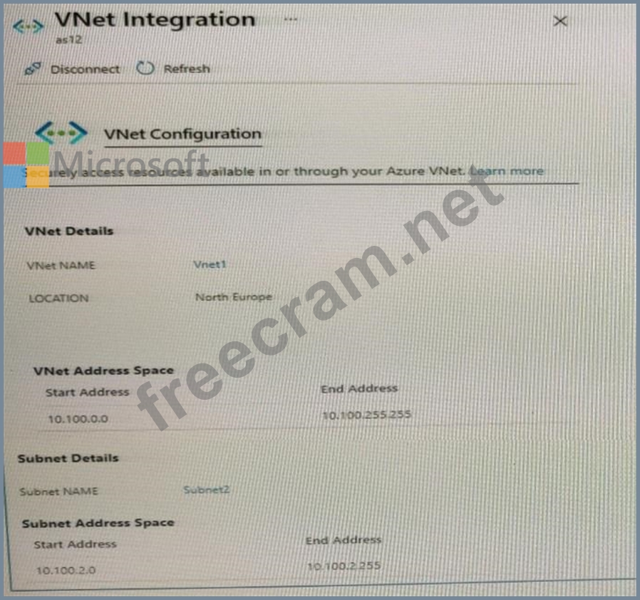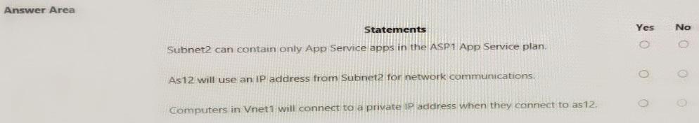 The VNet Integration settings for as12 are configured as shown in the Vnet Integration exhibit.