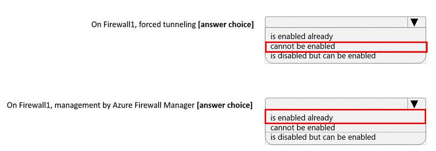 You have an Azure firewall shown in the following exhibit. Use the drop-down menus to select the answer choice that completes each statement based on the information presented in the graphic. NOTE: Each correct selection is worth one point.