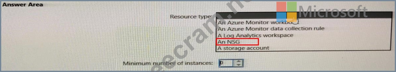 You need to meet the network security requirements for the NSG flow logs. Which type of resource do you need, and how many instances should you create? To answer, select the appropriate options in the answer area. NOTE: Each correct selection is worth one point.