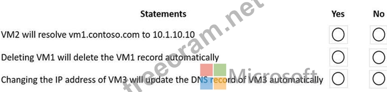 You have an Azure private DNS zone named contoso.com that is linked to the virtual networks shown in the following table.
