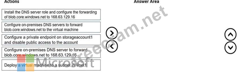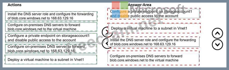 - Configure on-premises DNS servers to forward blob.core.windows.net to the virtual machine