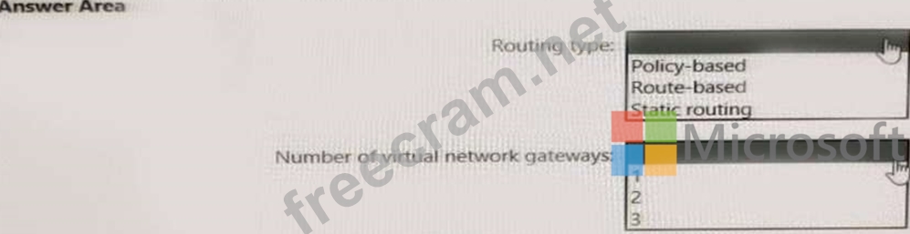 The correct answer is route based and two virtual network gateways