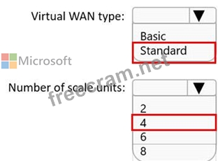 Supports 10 sites that will connect to the virtual WAN hub by using a Site-to-Site VPN connection Supports 8 Gbps of ExpressRoute traffic Minimizes costs What should you configure? To answer, select the appropriate options in the answer area.