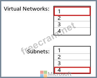 You need to identify how many virtual networks and subnets are required for the solution. The solution must minimize costs to transfer data between virtual networks.