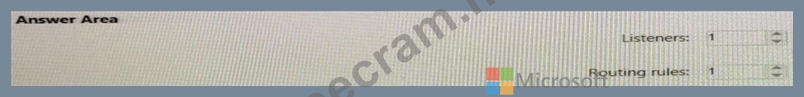 What is the minimum number of listeners and routing rules you should configure? To answer, select the appropriate options in the answer area.