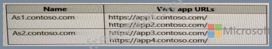 Two listeners, one for each unique HTTP host header (app1.contoso.com and app2.contoso.com) to differentiate between the web apps hosted on the Azure App Service instances.