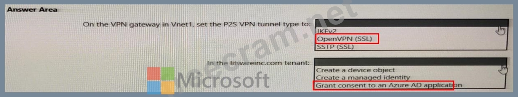 You need to implement a P2S VPN for the users in the branch office. The solution must meet the hybrid networking requirements.