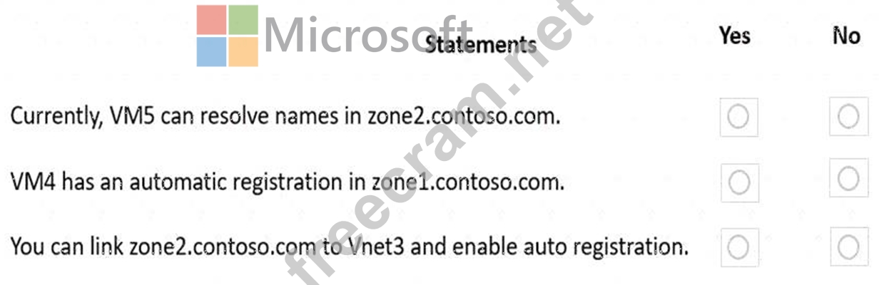 Question 7: You have an Azure subscription that contains the virtual net...